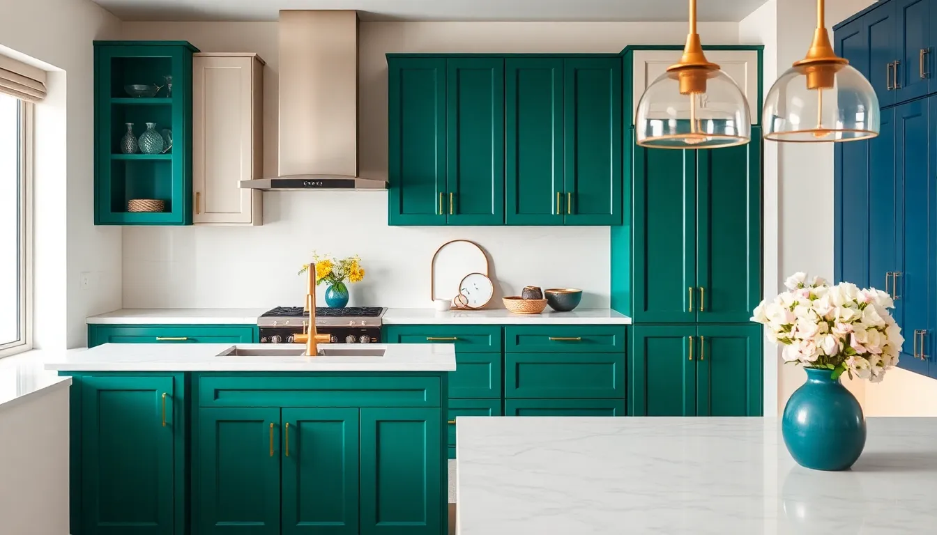 Rich greens, deep blues, and striking yellows capture attention in modern kitchens. These colors create a sense of drama and personality, allowing homeowners to express their style boldly. Many choose these hues for accent cabinets, bringing life to the space without overwhelming the design. Combining bold colors with soft neutrals, for instance, creates an eye-catching balance. Additionally, pairing these vibrant shades with gold or brass hardware adds elegance and sophistication.